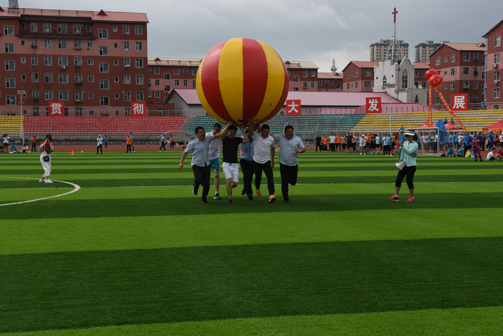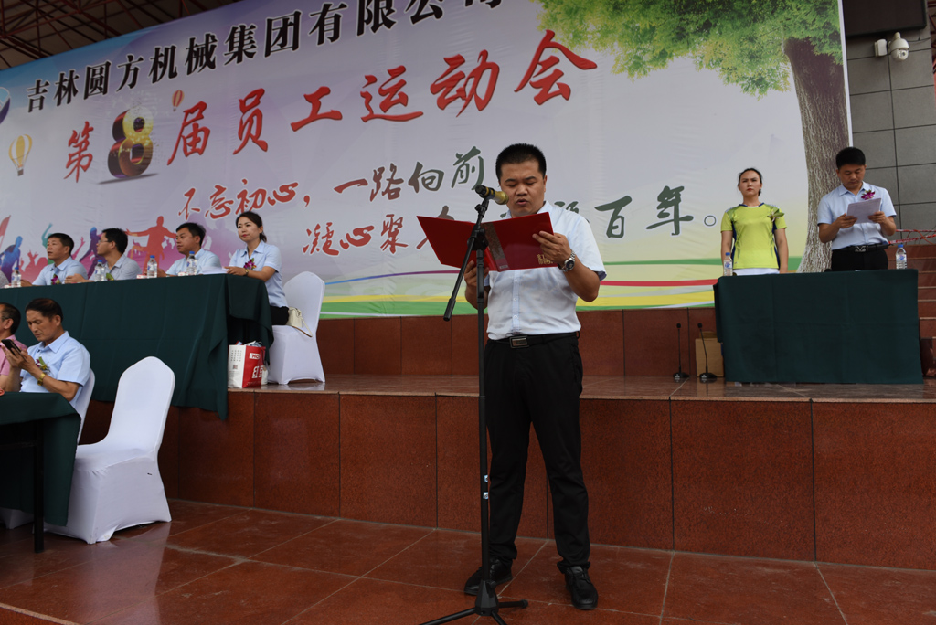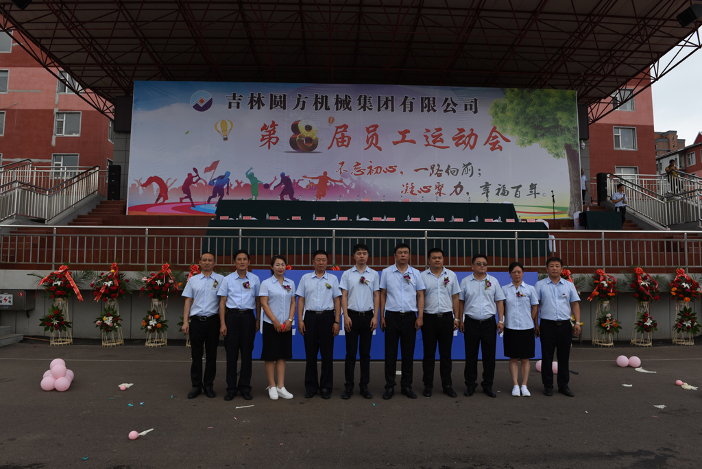 不忘初心,一路前行;凝心聚力,幸福百年。2019年7月24日,在樺甸市體育中心,吉林圓方機械集團有限公司隆重舉辦第八屆員工運動大會,集團公司董事長鐘景旭、副董事長鐘志濤攜700余員工參加運動會,集團公司總經理張學良致詞。樺甸市人大常委會副主任張建軍宣布本屆運動會開幕。在本屆運動會上,全體員工參與了20多項集體趣味運動。