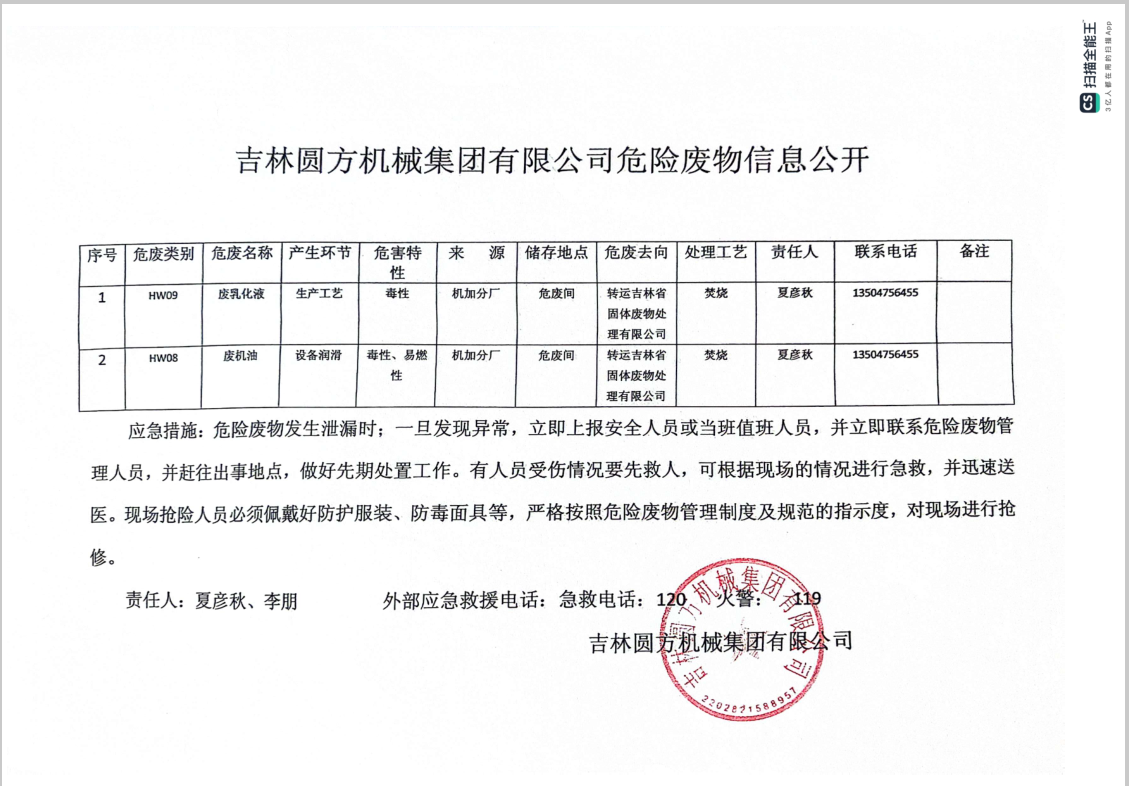 2024年公司危險廢物信息公開